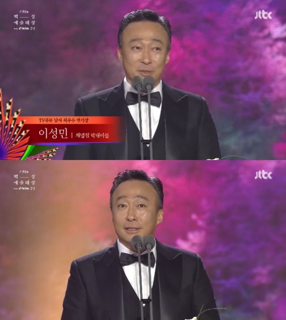 이날 이성민은 TV부문 최우수 연기상을 배우 송혜교와 함께 수상했다. 이성민은 JTBC 드라마 '재벌집 막내아들'에서 순양그룹 진양철 회장 역으로, 송혜교는 넷플릭스 오리지널 시리즈 '더 글로리'에서 학폭 피해자 문동은 역으로 트로피를 안았다.