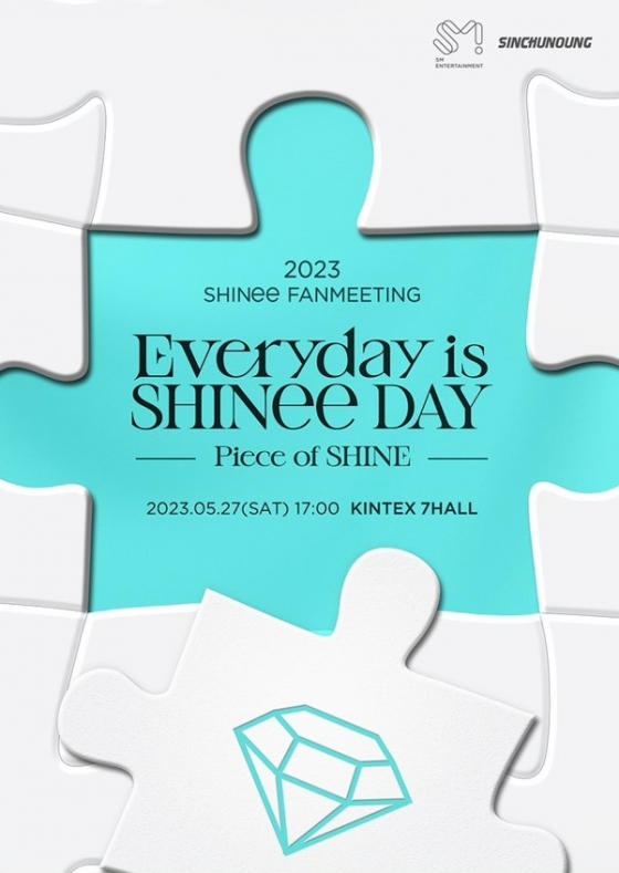 SM엔터테인먼트는 최근 샤이니가 오는 27일 오후 5시 일산 킨텍스 제2전시장 7홀에서 데뷔 15주년 팬미팅 2023 SHINee FANMEETING 'Everyday is SHINee DAY' : [Piece of SHINE]'(2023 샤이니 팬미팅 '에브리데이 이즈 샤이니 데이' : [피스 오브 샤인])을 개최한다고 알렸다.