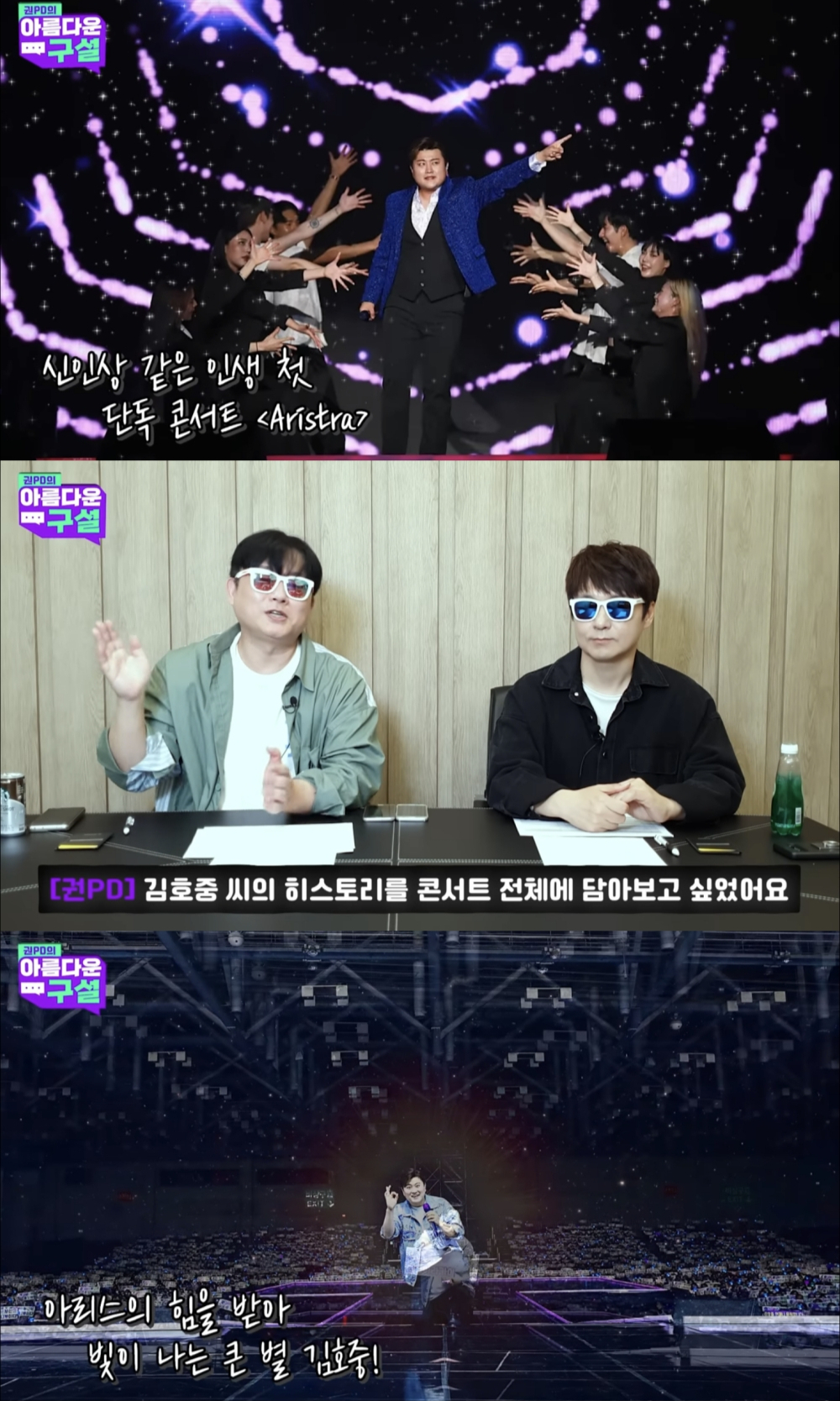 권재영 PD는 1일 공개된 유튜브 채널 '권PD의 아름다운 구설'에서 '아리스트라'에 대해 "단순한 공연이 아니라 하나의 작품을 관객들에게 선보이고 싶었다"며 "김호중의 인생을 스토리라인으로 김호중이 가장 돋보이는 무대이길 바랐다"라며 공연 전체에 김호중의 히스토리를 총 4개의 파트에 나눠 담았음을 알렸다.