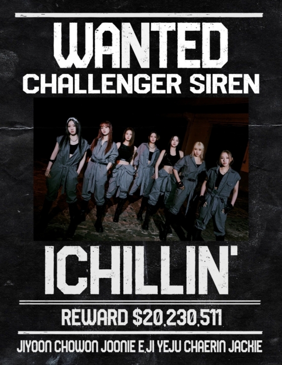 이미지 속 아이칠린은 그레이 톤의 캐주얼한 의상을 맞춰 입고 강렬한 눈빛으로 화면을 응시하며 걸크러시 매력을 발산했다. 여기에 현상금을 의미하는 달러($)로 '20,230,511'이라는 컴백 일자를 함께 새겨 넣어 팬들의 기대를 높였다.