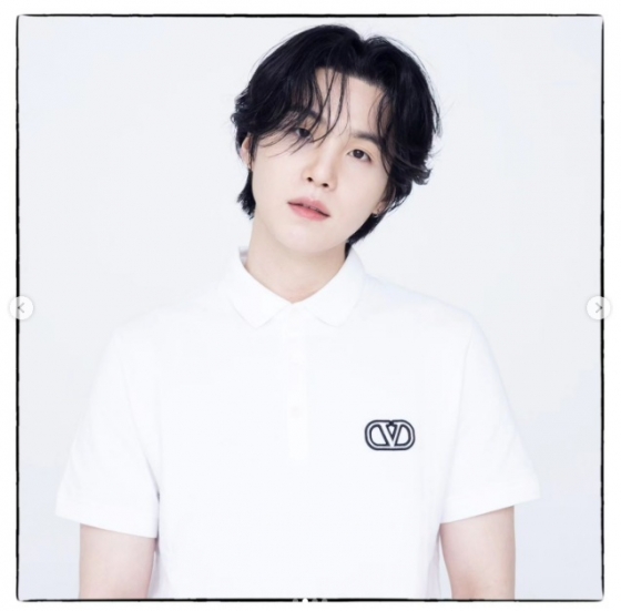 사진에는 슈가가 앰버서더인 명품 브랜드 발렌티노의 옷을 입고 화보를 촬영한 모습이 있었다.