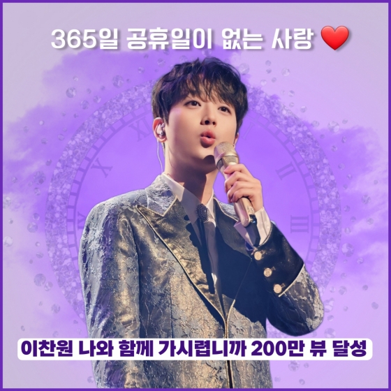 가수 이찬원의 '나와 함께 가시렵니까' 음원 영상이 200만 뷰를 달성하며 인기를 빛냈다.