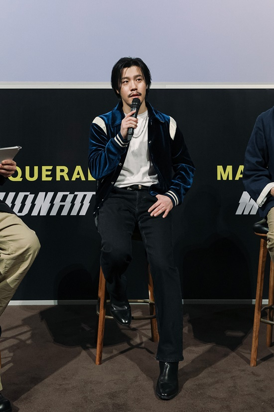 15일 오후 서울 용산구 CGV 용산아이파크몰에서 빅히트 뮤직-하이브IM 미드낫(MIDNATT)의 디지털 싱글 '마스커레이드'(Masquerade) 발매 기념 기자 간담회가 진행된 가운데, 이 프로젝트를 기획한 신영재 빅히트 뮤직 대표와 정우용 하이브IM 대표, 미드낫(이현)이 참석했다.