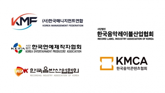 사단법인 한국매니지먼트연합, 사단법인 한국연예제작자협회, 사단법인 한국음반산업협회, 사단법인 한국음악레이블산업협회, 사단법인 한국음악콘텐츠협회(가나다순)