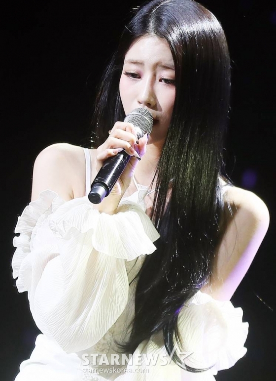 그룹 러블리즈 출신 미주가 솔로 데뷔를 이루며 눈물을 보였다.