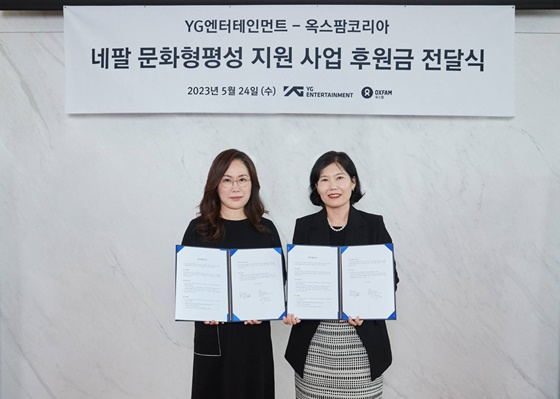 25일 YG엔터테인먼트에 따르면 지난 24일 서울 합정동 신사옥에서 'YG Walking Festival' 기부금 전달식이 진행됐다. 자리에는 YG 황보경 공동대표, 국제구호개발기구 옥스팜코리아 지경영 대표가 참석했다.