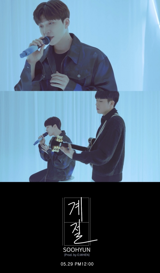 수현은 지난 26일 공식 SNS에 싱어송라이터 오왠(O.WHEN)과 협업한 솔로곡 '계절'의 라이브 클립 티저를 게재했다.