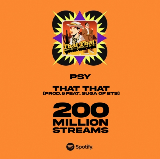 31일 소속사 피네이션(P NATION)은 "싸이의 정규 9집 '싸다9'의 타이틀곡 'That That (Prod. & feat. SUGA of BTS)'이 30일 기준 스포티파이에서 2억 스트리밍을 돌파했다"라고 밝혔다.