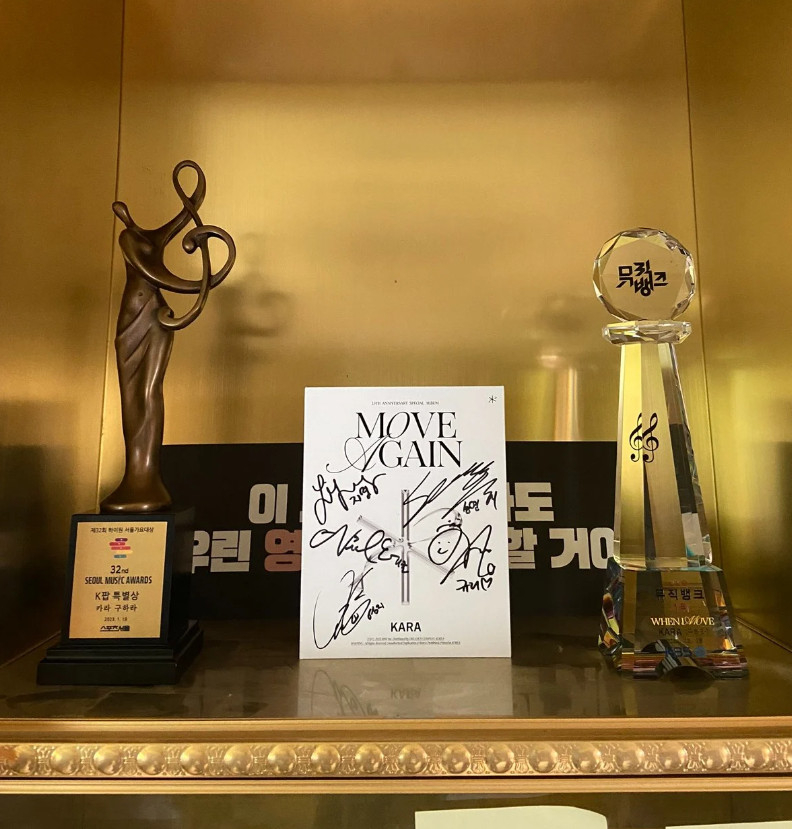 지난 6일 온라인 커뮤니티에는 "구하라의 추모관에 이번 앨범 활동 모든 트로피를 놓고 간 카라"란 제목의 글이 게재됐다.