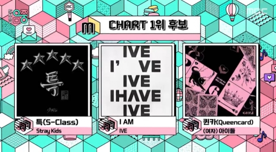 스트레이키즈는 '특'(S-Class), 아이브는 'I AM'(아이 엠)', (여자)아이들은 '퀸카'(Queencard)로 1위 대결을 한다.