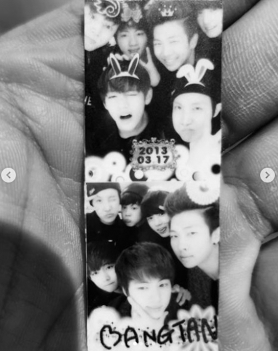 이어 RM은 10년 전 방탄소년단 멤버들과 함께 찍었던 스티커 사진도 공개했다. 지금보다 훨씬 어린 앳된 모습의 방탄소년단 멤버들의 모습이 시선을 사로잡는다.