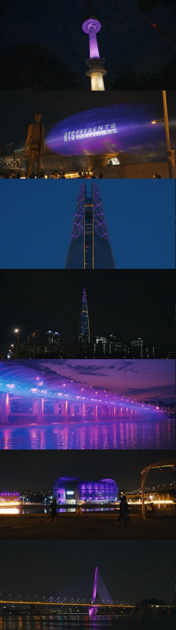 방탄소년단 소속사 빅히트 뮤직과 서울시에 따르면, 이날부터 25일까지 서울의 주요 랜드마크 8곳이 보랏빛으로 변한다. 특히 세종문화회관, 세빛섬(예빛섬), 남산서울타워에는 미디어파사드(건물 외벽에 콘텐츠 영상을 투사하는 것)가 상영된다.