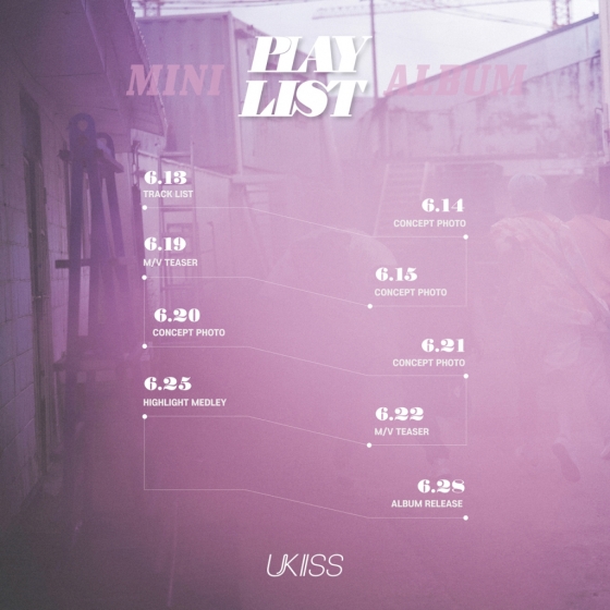 유키스(수현, 훈, 기섭, 알렉산더, AJ(시윤), 일라이)는 지난 12일 공식 SNS에 미니앨범 'PLAY LIST'(플레이리스트)의 스케줄러를 게재했다. 유키스를 상징하는 펄 푸치샤 톤의 배경 위로 어디론가 힘차게 달려가는 멤버들의 뒷모습이 담겨 궁금증을 높였다.