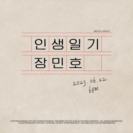 호엔터테인먼트는 14일 공식 SNS를 통해 장민호의 디지털 싱글 '인생일기' 발매 소식을 전했다.