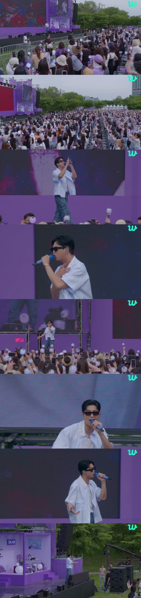 그러면서 "여러분께 늘 감사하고 생각하고 있다는 사실은 변함이 없을 것"이라며 "좋은 경험을 하게 해주신 아미 여러분께 감사하다. 방탄소년단의 10주년을 사랑해준 모든 분들에게 감사드린다. 앞으로도 이 험한 세상에서 함께 잘 살아보자. 우리 존재 파이팅"이라고 외치며 라이브로 '들꽃놀이'를 열창했다.
