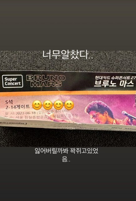 영재는 19일 자신의 인스타그램에 "BRUNO MARS 형 진짜"라며 "너무 알찼다. 잃어버릴까봐 꽉 쥐고 있었음"이라며 브루노 마스의 콘서트 티켓을 인증샷으로 공개했다.