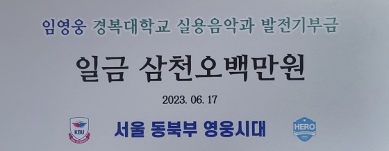 '서울동북부영웅시대'는 "임영웅이 가수로서 꿈을 본격적으로 키워나갔던, 경복대학교 후배들의 음악 활동에 조금이라도 보탬이 돼 임영웅처럼 위로와 감동을 주는 아티스트로 잘 성장해 나가길 기원하는 마음을 담았다"고 밝혔다.