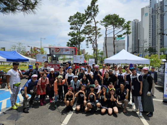 초코파이브와 오케이좋아연예인봉사단이 지난 22일 성북구 장위실버복지센터 야외 앞마당에서 짜장밥차 나눔 봉사 행사를 진행했다.