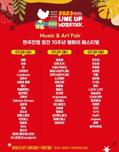 오는 7월 28일부터 30일까지 경기 포천 한탄강 다목적광장 일대에서 '우드스탁 뮤직 앤 아트 페어 2023'가 개최된다.