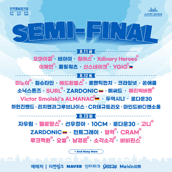 2023 전주얼티밋뮤직페스티벌(JUMF2023)의 semi-final 2차 라인업이 27일 정오에 티켓 오픈과 함께 JUMF 2023 공식 SNS계정을 통해 공개됐다.