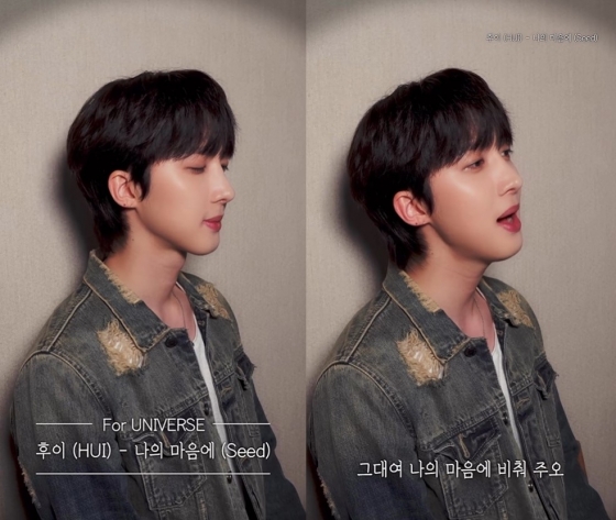 지난 29일 펜타곤 공식 SNS 계정에 하나의 영상이 게재됐다. 해당 영상에서 후이는 청재킷을 입은 채 등장해 태양의 '나의 마음에 (Seed)'를 열창했다.