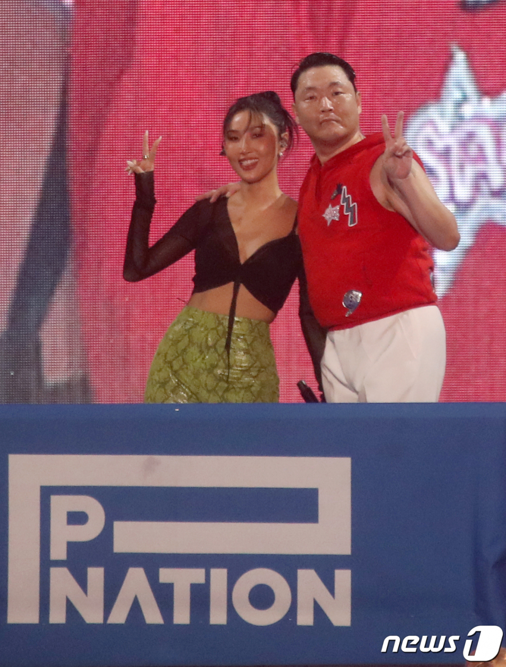 가수 화사가 제시에 이어 '싸이 흠뻑쇼 SUMMERSWAG 2023'(이하 '싸이 흠뻑쇼 2023') 게스트로 출격한 가운데, 무대 위에서 싸이가 수장으로 있는 피네이션과 계약서를 작성했다.