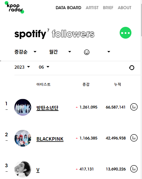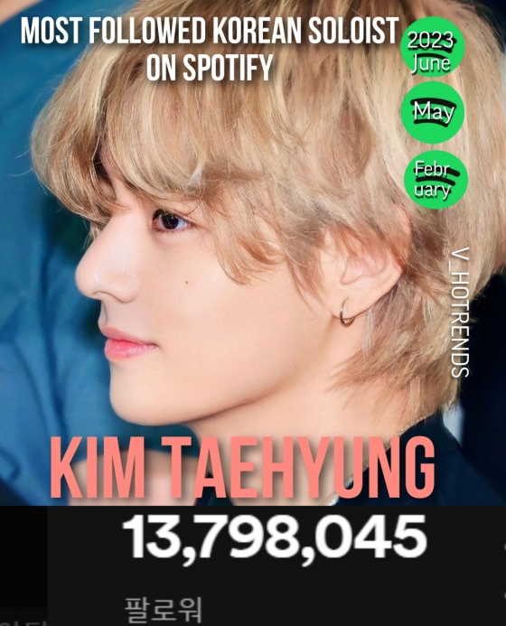 방탄소년단(BTS) 뷔가 세계 최대 음원 플랫폼 스포티파이에서 6월 가장 많은 팔로워를 추가한 한국 솔로아티스트에 등극하며 솔로 파워를 빛냈다.