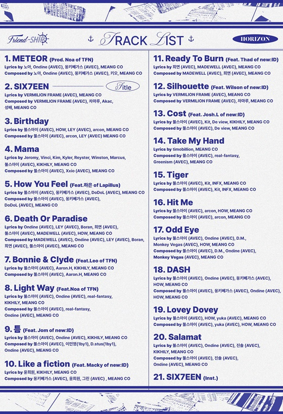 호라이즌은 지난 12일 오후 공식 SNS 채널을 통해 데뷔 정규앨범 'Friend-SHIP'(프렌드-십)의 트랙리스트를 공개했다.