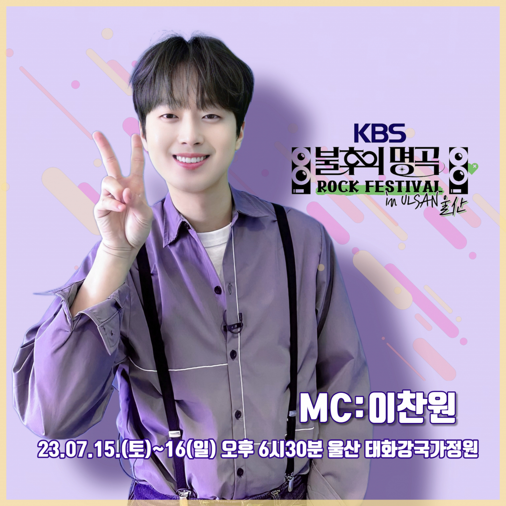 이찬원은 7월 15일~16일 울산광역시 태화강국가정원에서 열리는 'KBS 불후의 명곡 록 페스티벌 in 울산' 공연 MC로 나선다.