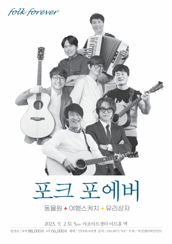 포크음악의 대명사 동물원, 여행스케치,유리상자가 3색 컬래버레이션 콘서트 '포크 포에버'(Folk forever)로 뭉친다.