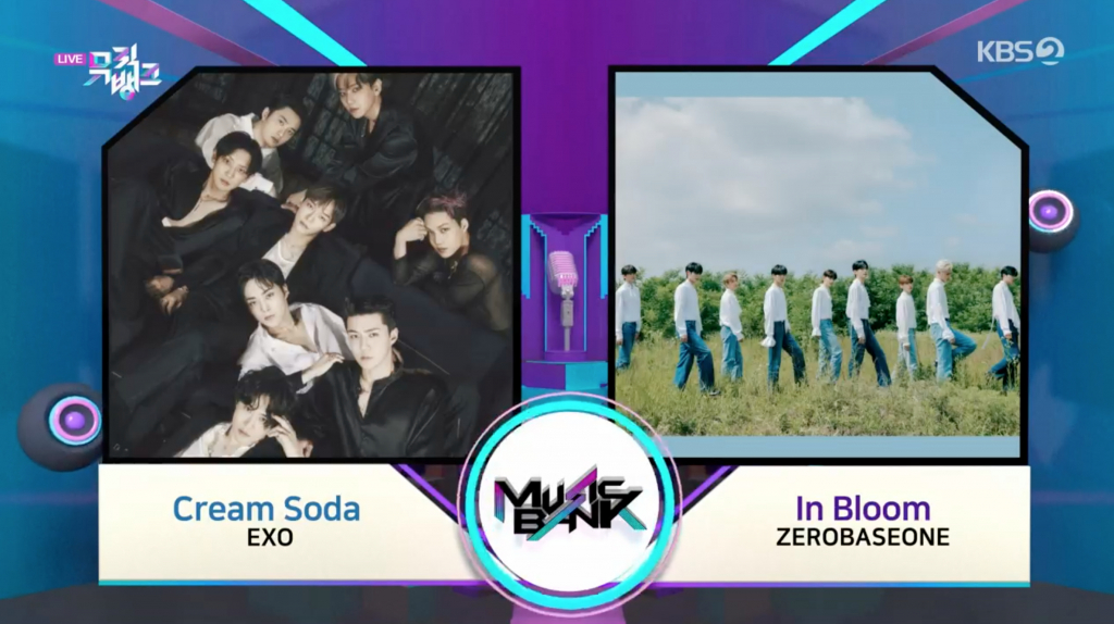 엑소와 제로베이스원이 '뮤직뱅크' 1위 후보에 올랐다.