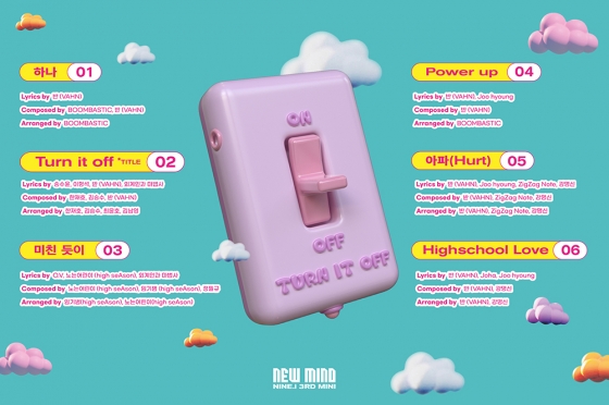 또한, 나인아이의 세번째 미니앨범 'NEW MIND' 의 타이틀곡 'Turn it off' 는 데뷔 때부터 추구해온 '음악적인 감동의 서사'를 이뤄내는 곡으로, 노스텔지아적인 사운드와 감성적인 멜로디가 돋보이는 것으로 알려졌다. 베일에 싸여 있는 타이틀곡 '턴 잇 오프(Turn it off)'가 어떤 스타일의 음악일지 K-POP 팬들의 이목이 쏠리고 있다.