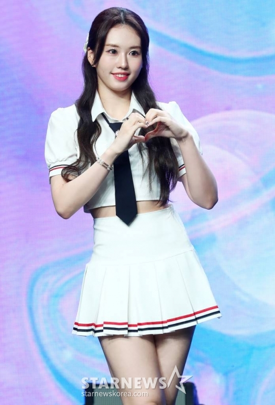 걸그룹 아일리원(ILY:1) 나유가 25일 오후 서울 강남구 청담동 일지아트홀에서 진행된 두 번째 미니 앨범 'New Chapter(뉴 챕터)' 발매 기념 쇼케이스에 참석해 포즈를 취하고 있다. 아일리원 이번 앨범에는 타이틀곡 'MY COLOR(마이 컬러)'를 비롯해 'Shining Sky(샤이닝 스카이)', '꽃이 피었습니다(Blossom)' 등 총 3곡이 수록됐다. 2023.07.25 /사진=김창현 기자 chmt@