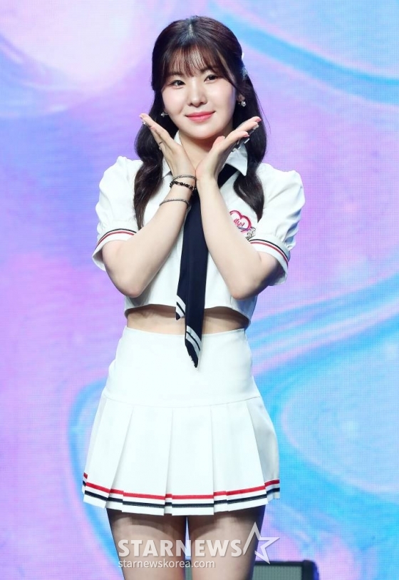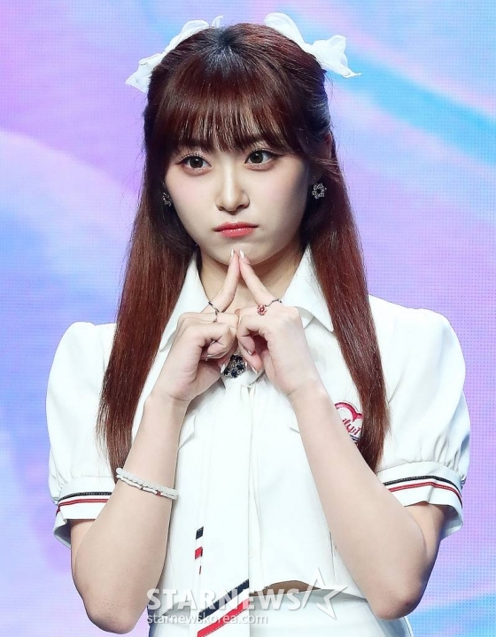걸그룹 아일리원(ILY:1) 하나가 25일 오후 서울 강남구 청담동 일지아트홀에서 진행된 두 번째 미니 앨범 'New Chapter(뉴 챕터)' 발매 기념 쇼케이스에 참석해 포즈를 취하고 있다. 아일리원 이번 앨범에는 타이틀곡 'MY COLOR(마이 컬러)'를 비롯해 'Shining Sky(샤이닝 스카이)', '꽃이 피었습니다(Blossom)' 등 총 3곡이 수록됐다. 2023.07.25 /사진=김창현 기자 chmt@