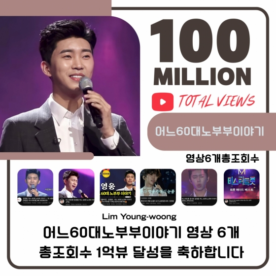 가수 임영웅의 '어느 60대 노부부 이야기' 무대 영상이 총조회수 1억 뷰 대기록을 달성했다.