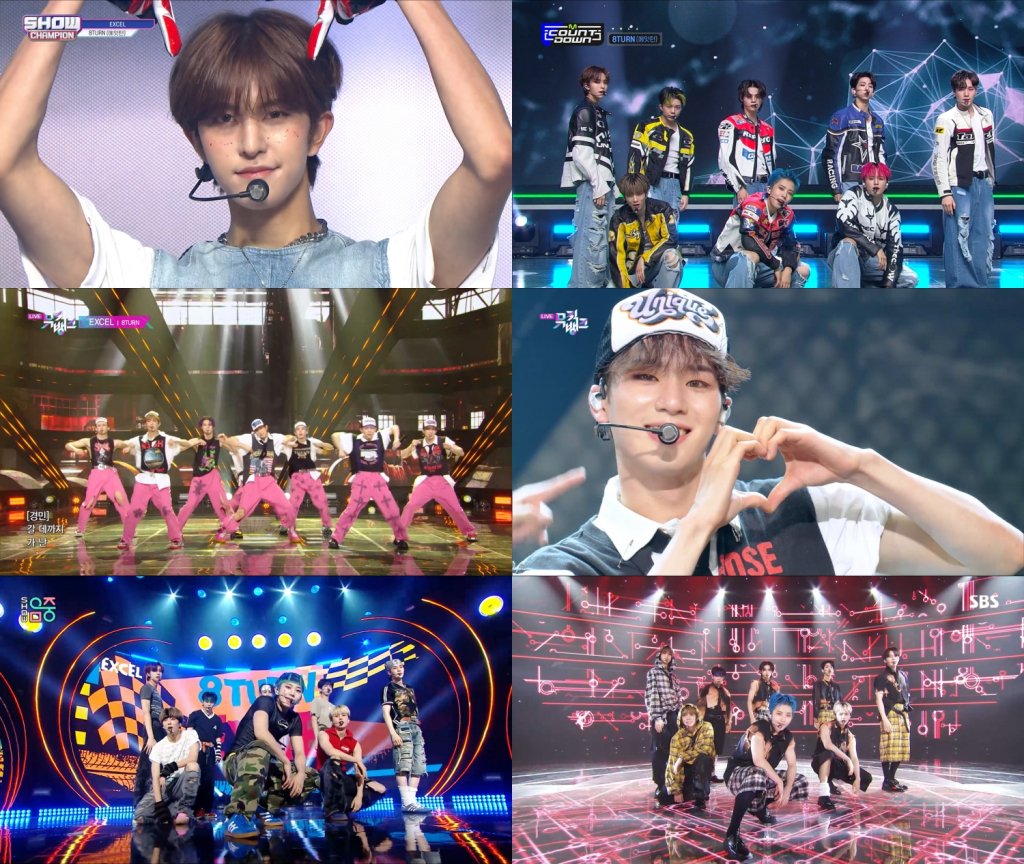 8TURN은 타이틀곡 'EXCEL' 무대로 8인 8색의 확고한 음악 색깔과 함께 예측 불가한 매력이 한껏 묻어난 퍼포먼스로 '팔색조 올라운더'의 면모를 제대로 증명했다. 정해진 방향이 아닌 내가 원하는 길을 찾겠다는 '언드리프트 춤'과 나를 억압하는 상황을 향해 Z세대만의 시원한 거절을 전하는 'KKONDAE 춤' 등 위트 넘치는 포인트 안무가 짜릿한 쾌감과 함께 듣고 보는 재미를 더했다.