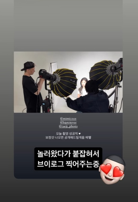 천둥은 이에 앞서 "오늘 미밍이 매니저했다.. 너무 예뻐서 안 힘들었다"라며 미미가 화보 촬영하는 모습의 영상을 공개하기도 했다. 또 천둥은 "놀러왔다가 붙잡혀서 브이로그 찍어주는 중"이라며 눈에 하트가 달린 이모티콘을 덧붙였다.