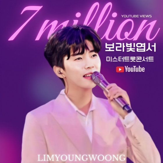 가수 임영웅이 미스터트롯 콘서트에서 선보인 '보라빛 엽서' 무대 영상이 700만 뷰를 달성하며 인기를 이어갔다.