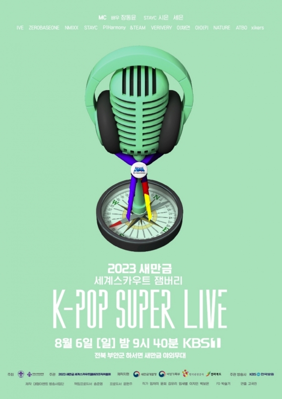 한국스카우트연맹이 주최하고 2023 새만금 세계스카우트 잼버리조직위원회가 주관, 새만금개발청, 여성가족부, 한국관광공사, 전라북도가 제작 지원하는 KBS 1TV '2023 새만금 세계스카우트 잼버리 케이팝 슈퍼 라이브'(책임프로듀서 송준영·연출 고국진, 이하 '케이팝 슈퍼 라이브')가 오는 6일 막을 올린다. 다채로운 분야의 국내 최정상 아티스트들이 총출동해 이목을 집중시키는 가운데, '케이팝 슈퍼 라이브' 개최에 대한 기대 포인트를 짚어봤다.