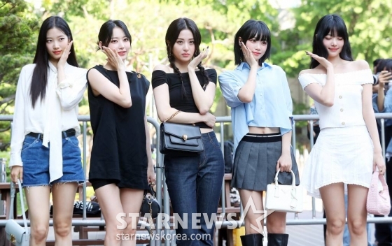 걸그룹 르세라핌이 19일 오전 서울 영등포구 여의도동 KBS 신관홀에서 진행된 '뮤직뱅크' 리허설에 참석하며 포즈를 취하고 있다. 2023.05.19 /사진=김창현 기자 chmt@