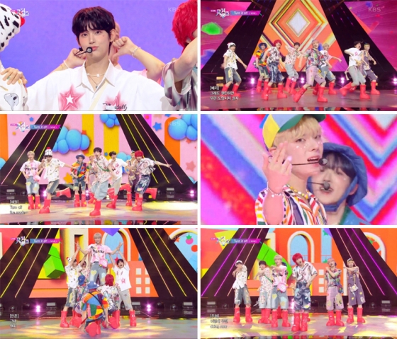 이날 나인아이는 독보적 색채와 콘셉트를 확실하게 각인시켰다. 청량함을 느낄 수 있는 비비드한 색감의 무대 의상을 입고 풋풋한 비주얼로 한눈에 시선을 강탈하는 '아톰 부츠'를 9명이 신고 등장해 팬들의 환호성을 유발했다.