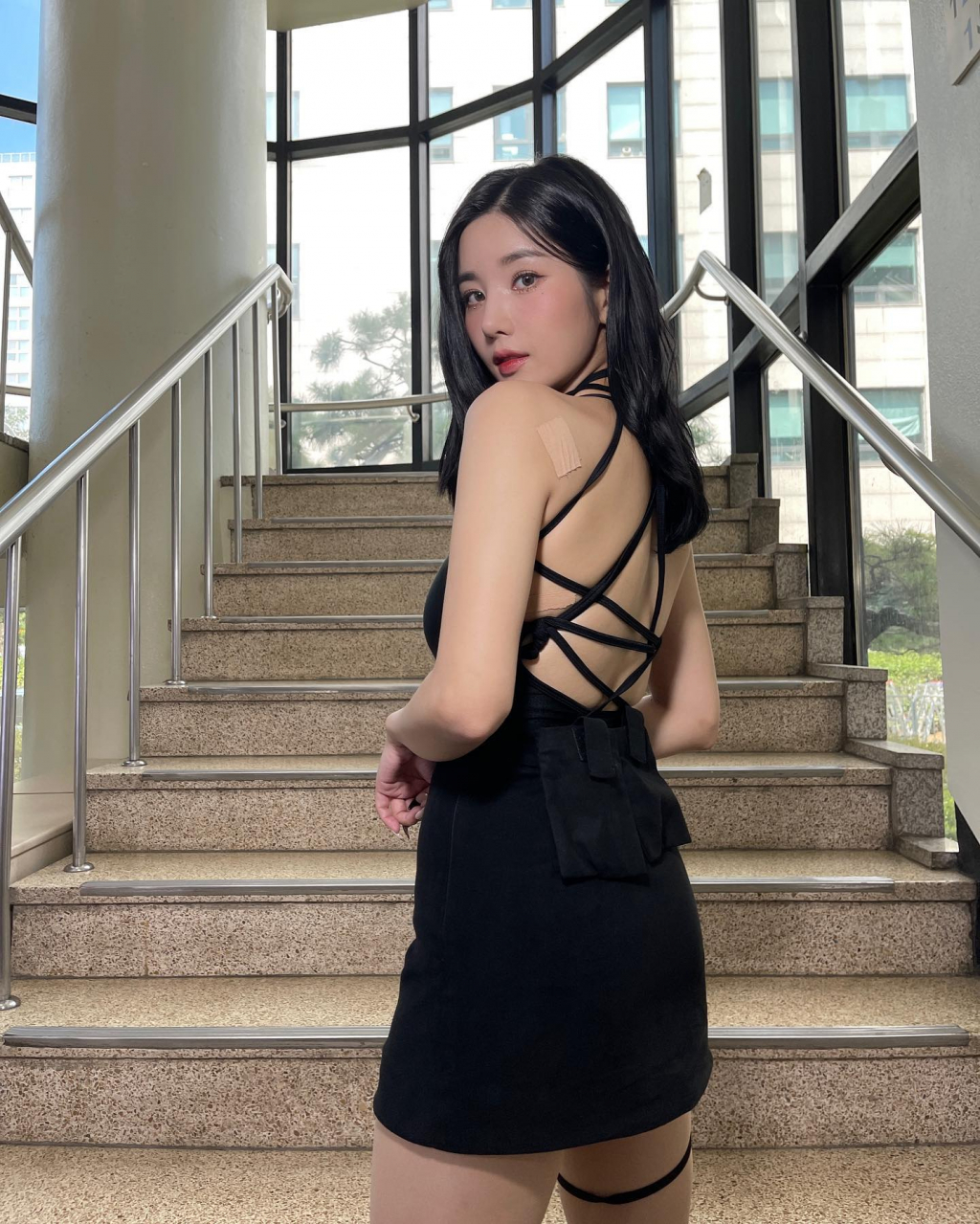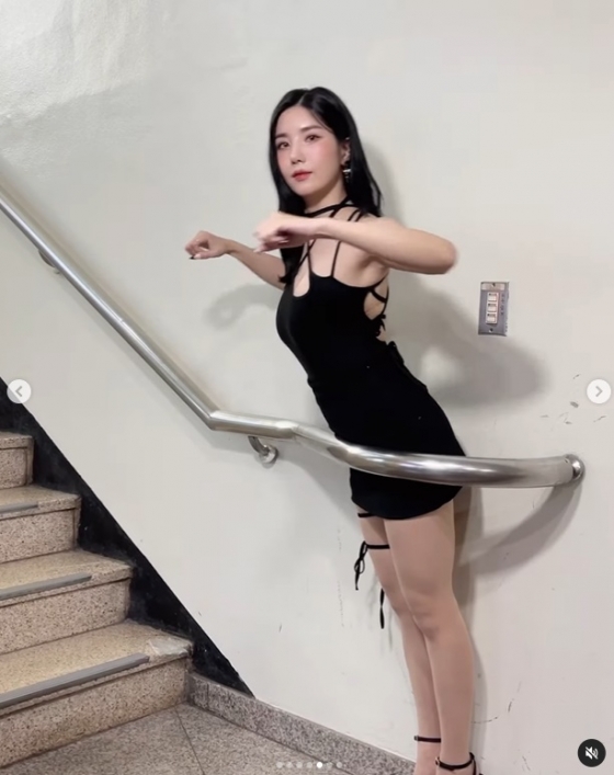 권은비는 '뮤직뱅크' 대기실 복도에서 이색 포즈를 선보여 눈길을 끌었다. 그는 계단 손잡이 사이의 틈에 들어가 극강의 슬림한 몸매를 자랑한 것.