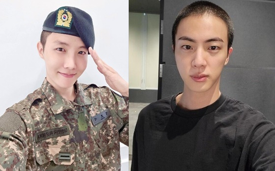 한편 진은 지난해 12월 현역으로 입대해 경기 연천군 육군 제5보병사단 신병교육대대 조교로 복무 중이다. 제이홉은 4월 18일 입대해 육군 제36보병사단 신병교육대대에서 조교로 복무하고 있다.