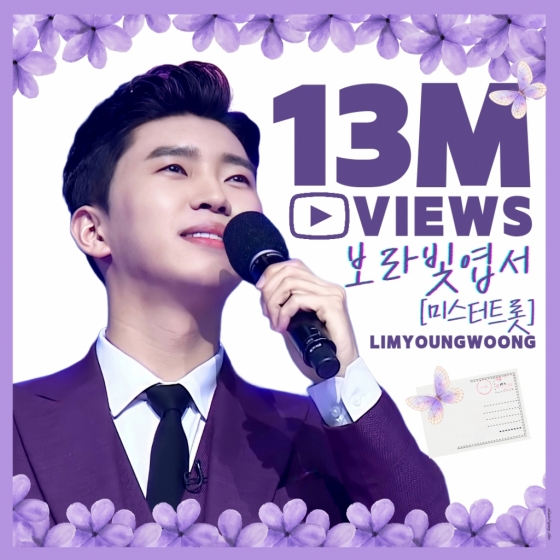 가수 임영웅의 로맨틱 감성이 빛나는 '보라빛 엽서' 무대 영상이 1300만 뷰를 달성했다.