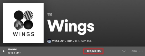 방탄소년단(BTS) 진의 솔로곡 '어웨이크'가 스포티파이 1억 2300만 스트리밍을 돌파하며 인기를 빛냈다.