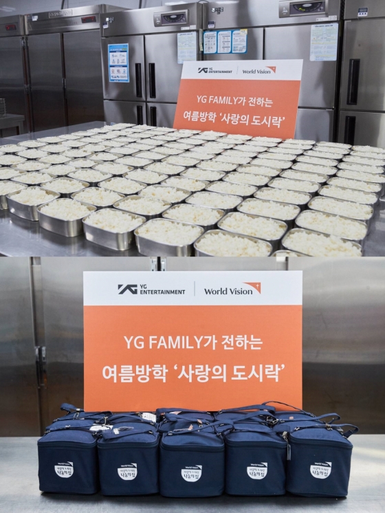 YG엔터테인먼트는 급식 없는 방학 기간 결식 우려가 있는 저소득 가정 아이들이 막바지 무더운 여름을 건강하게 보낼 수 있도록 응원하는 마음을 담아 월드비전과 함께 '사랑의 도시락'을 전달했다고 12일 밝혔다.