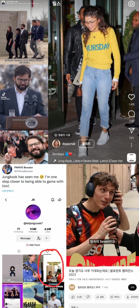 가브리엘 보리치(Gabriel Boric) 칠레 대통령은 최근 인스타그램스토리와 틱톡을 통해 연설 영상을 게재하며 BGM으로 정국의 'Seven'을 사용한 사실이 트위트를 통해 알려져 뜨거운 화제를 모았다.