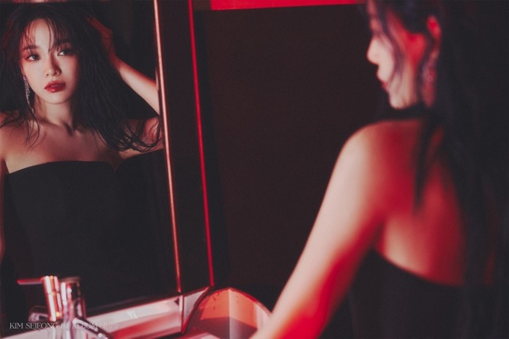 사진 속 김세정은 붉은 립과 흐트러진 헤어, 블랙 드레스로 스타일링한 채 치명적인 눈빛으로 거울을 보고 서 있다. 붉은 조명이 가득 찬 공간은 매혹적인 분위기를 배가시켰다.