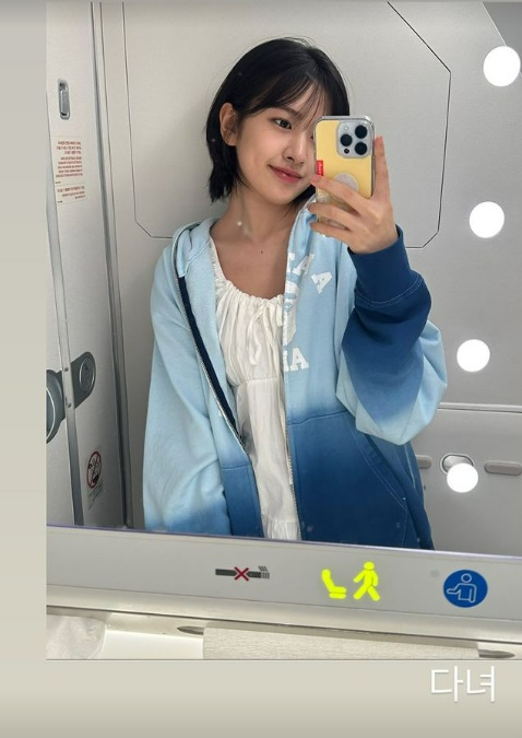 안유진은 비행기 화장실 셀카를 선보인 가운데, 짧아진 단발머리로 시선을 사로잡았다. 그는 데뷔 후 최초로 가장 짧은 머리를 선보인 것.