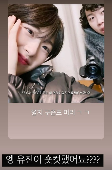 안유진은 앞서 tvN 예능프로그램 '지구오락실'에서 드라마 '커피프린스 1호점' 속 고은찬(윤은혜 분)를 따라하며 나영석PD에게 "머리 자르고 싶다. 이 기회에 회사를 설득해달라"라고 말한 바 있다.